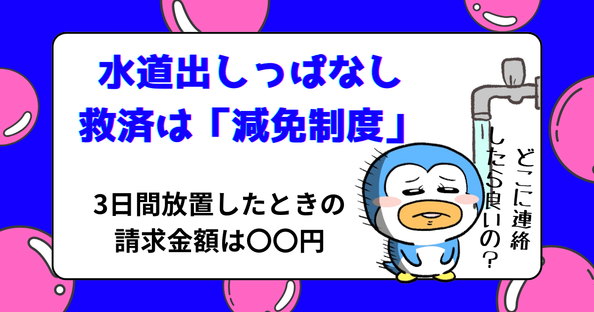 水道出しっぱなし救済措置である、水道局の減免制度について、適応条件と対象外となるケースを詳しく解説していきます。